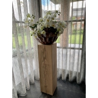 Primero pulimos las peanas y luego las lijamos, respetando el aspecto natural de la madera con sus nudos y pequeñas grietas, por lo que cuando compra una de estas peanas usted recibe un producto natural listo para decorar su interior o jardín. También puede usarla como mesita auxiliar colocándole ruedas debajo.