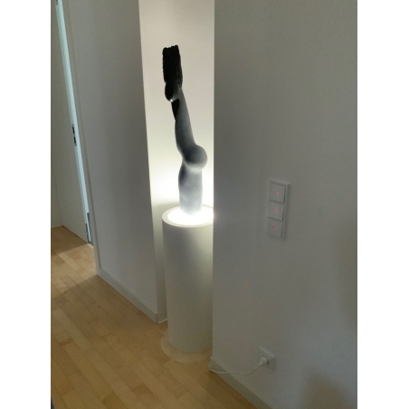 Las peanas redondas son elaboradas en su mayor parte de material sintético. La superficie es lisa y sin juntas y se puede pintar en cualquier color. Las peanas están disponibles también con una urna protecctora redonda para una presentación vistosa de su producto.