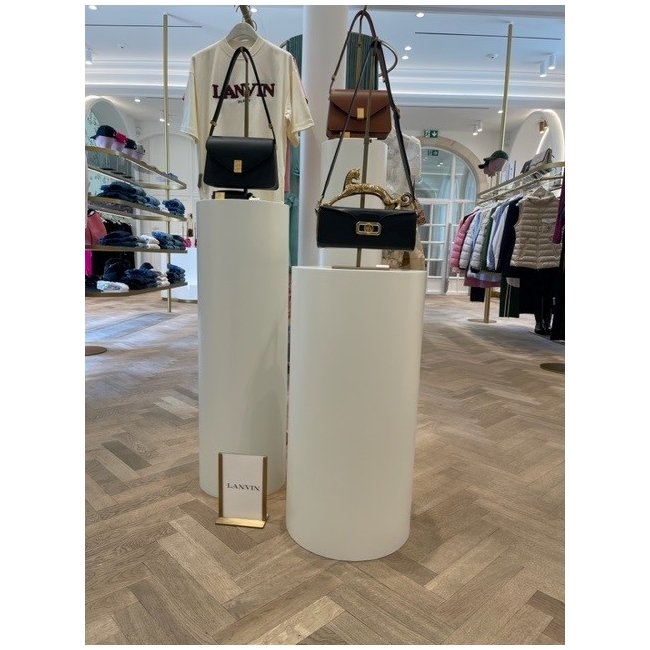 Las peanas redondas son elaboradas en su mayor parte de material sintético. La superficie es lisa y sin juntas y se puede pintar en cualquier color. Las peanas están disponibles también con una urna protecctora redonda para una presentación vistosa de su producto.